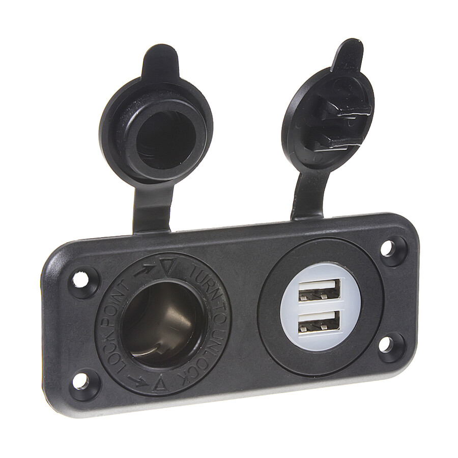 Dvojitá zásuvka do panelu 1x CL (max. 20A) + 2x nabíječka USB voděodolná.