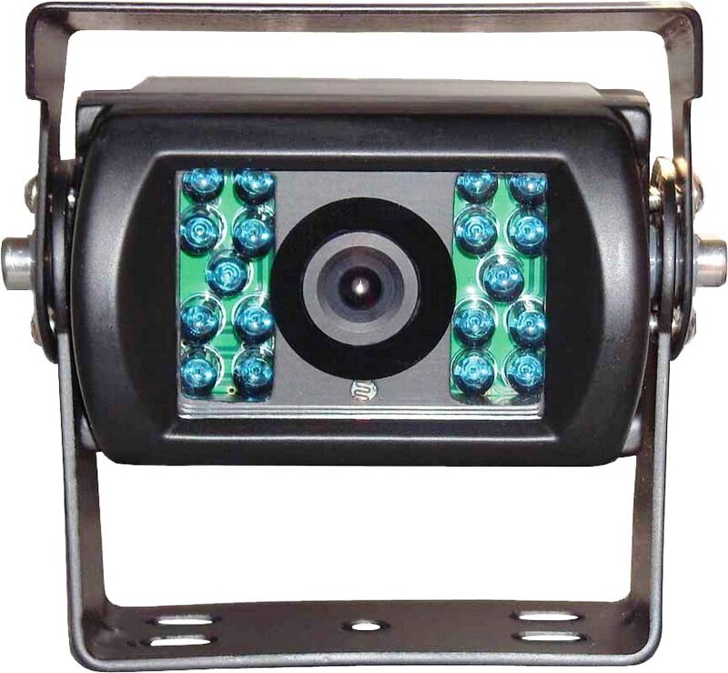 Kamera CCD s IR světlem, vnější, určená pro montáž především na nákladní vozy, autobusy, karavany či dodávky. Propojení 4-PINovým kabelem