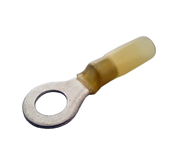 Kabelové oko lisovací na šroub M6 s teplem smrštitelnou bužírkou a lepidlem.