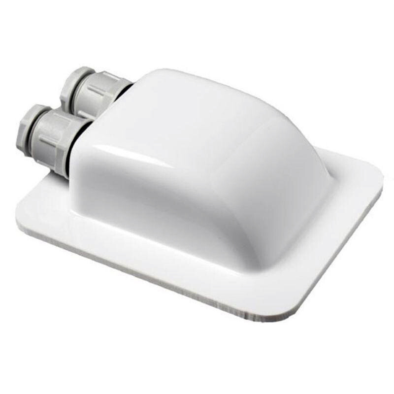Střešní kabelová průchodka z bílé umělé hmoty. Lepí se na montážní plochu. Díky odolnosti proti UV záření a proti vlivům počasí je vhodná pro venkovní použití. Kabelové šroubení utěsní vedený kabel tak, že do krytu nemůže proniknout vlhkost. Dodání včetně PG šroubení.