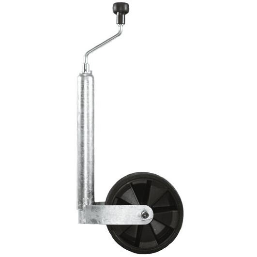 Zvedací kolečko s plastovým ráfkem,kolečko je z měkké pryže, průměr je 48 mm a rozměry 220 x 70 mm. Nosnost 150 kg, váha 4,51 kg.